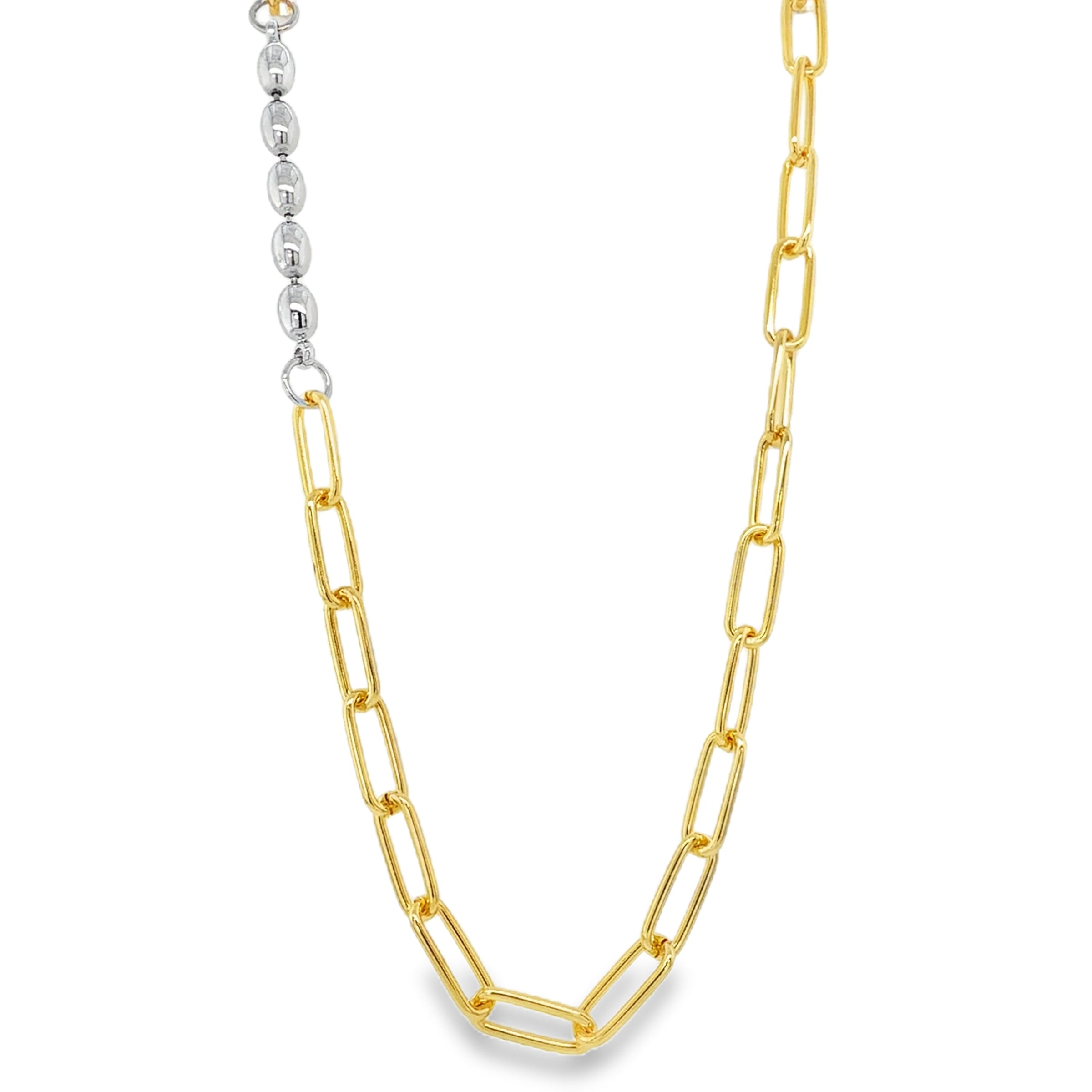 Rhodium and Gold Plated Beaded and Link Collar Necklace.