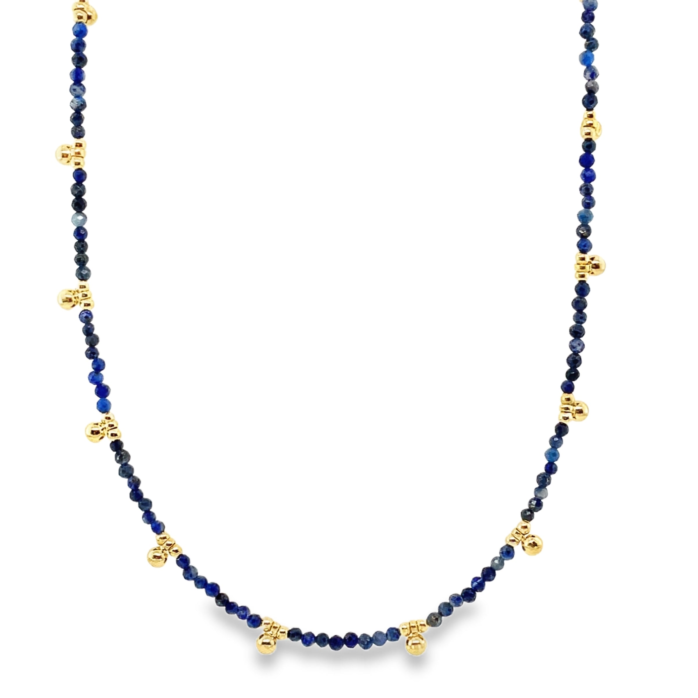 Gold Plated and Colored Bead Necklace.with Adjustable Spring Ring Clasp.