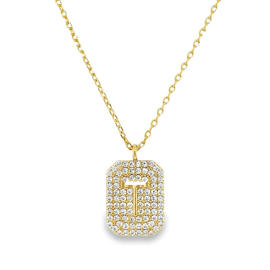 Gold Plated Tag Initial "T" Necklace 16-18".