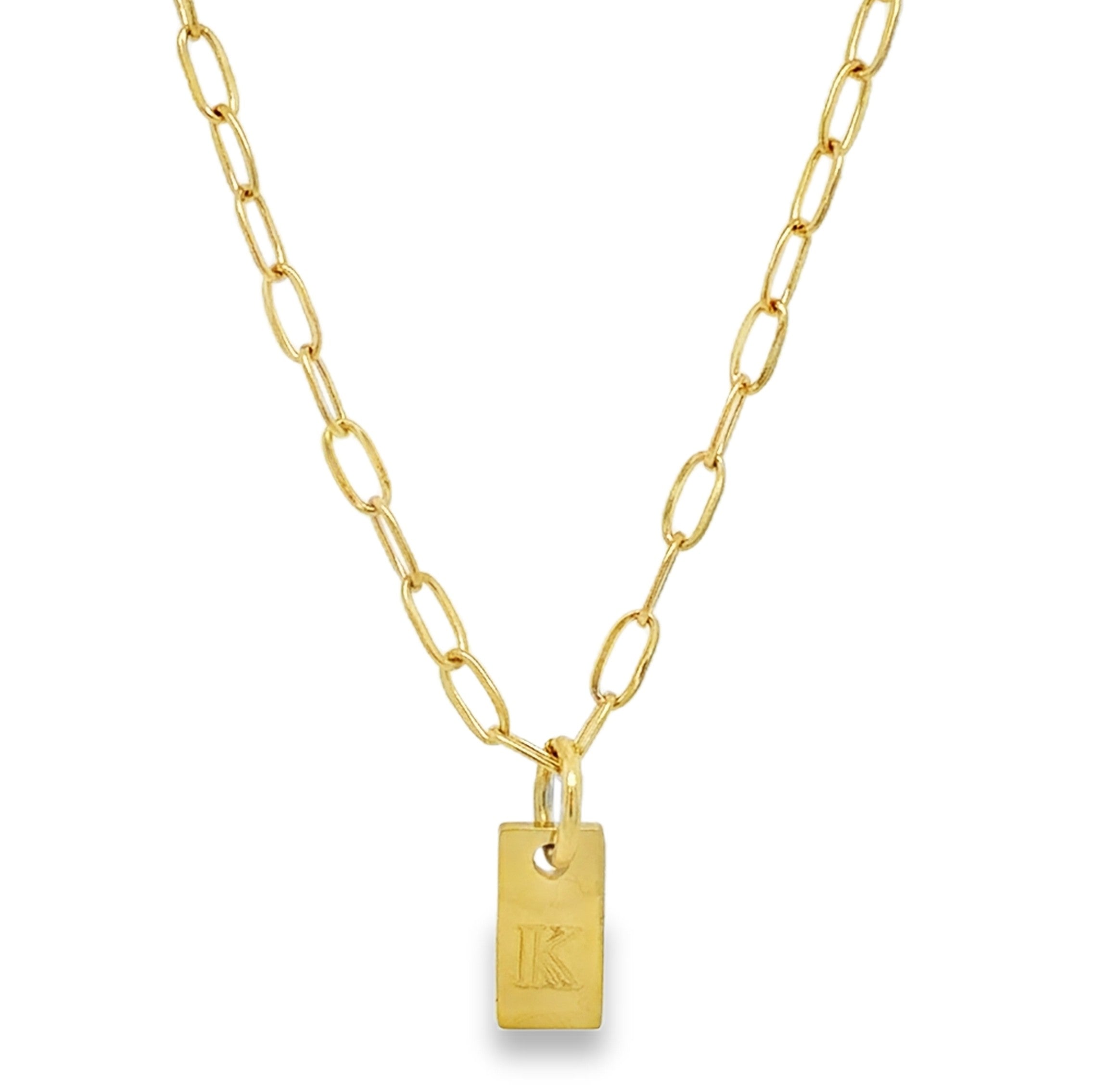 Gold Plated Stainless Steel Necklace with Oval Links and Initial "K".