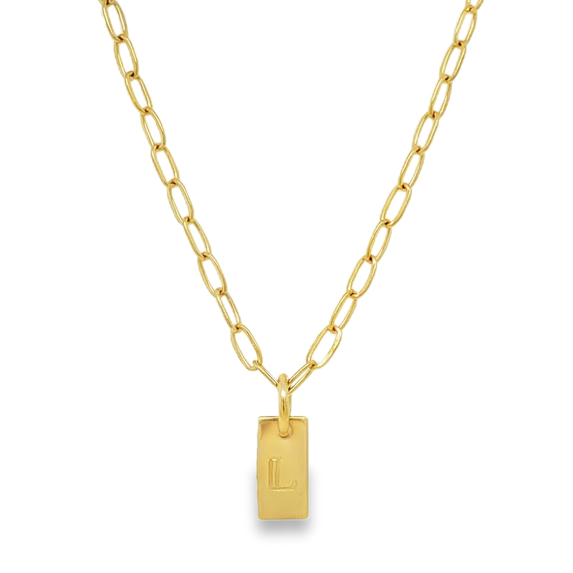 Gold Plated Stainless Steel Necklace with Oval Links and Initial "L".