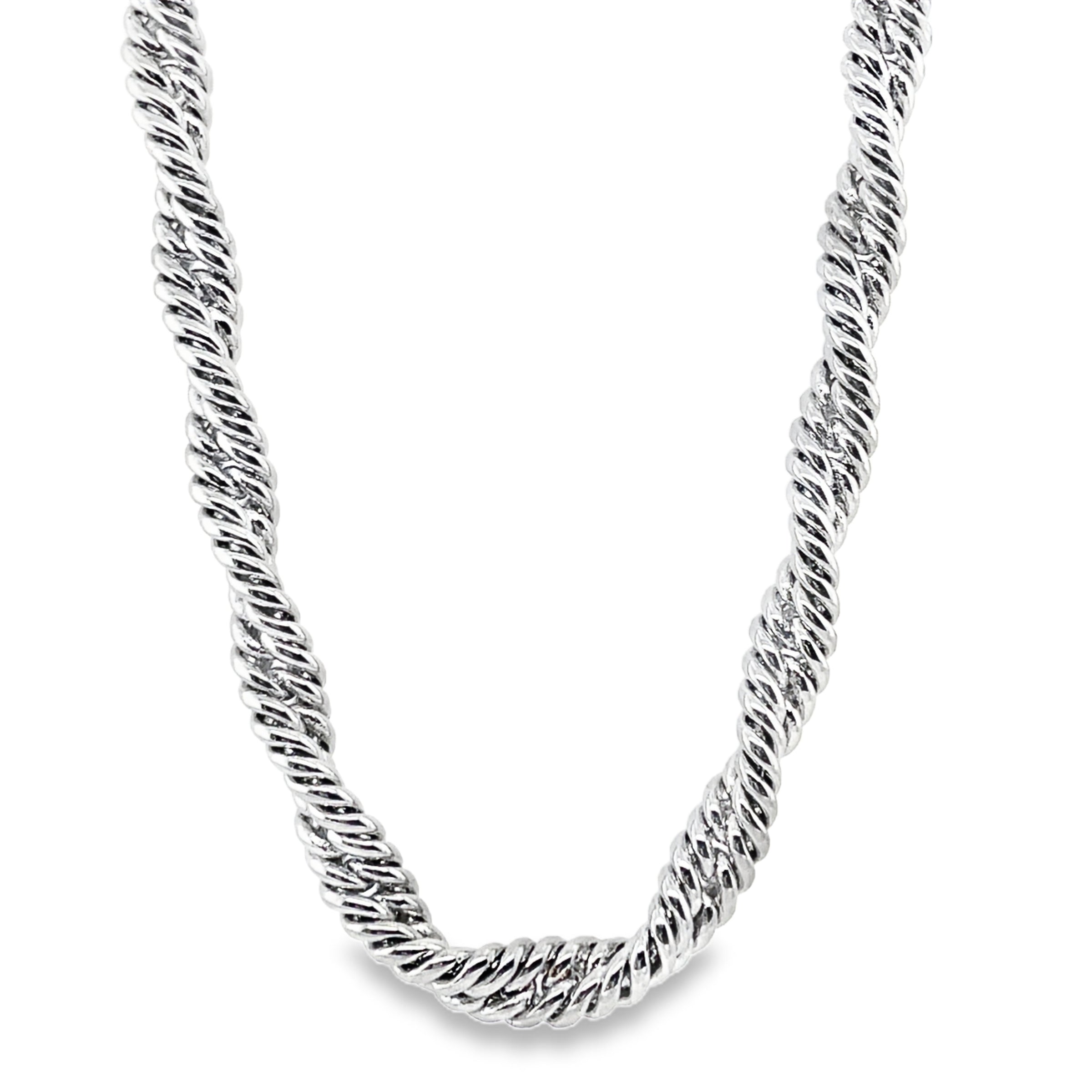Rhodium Plated Braided Twist Link Collar Necklace.