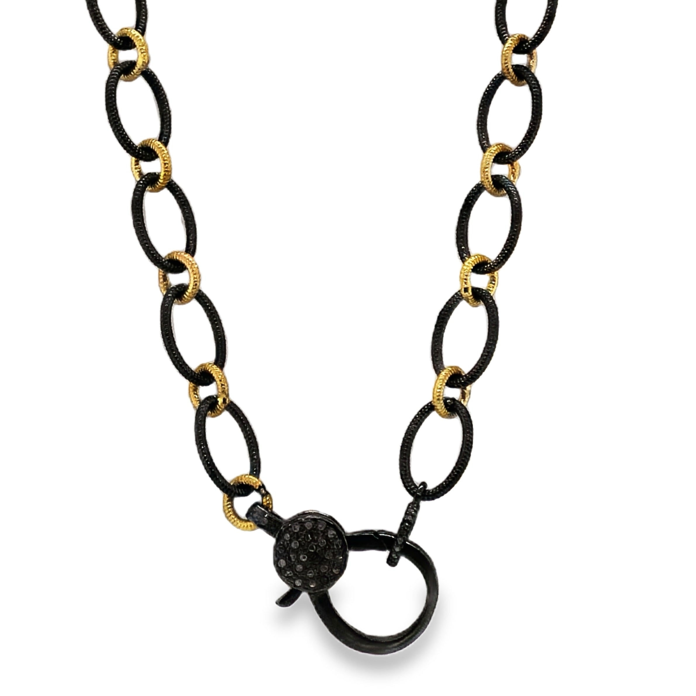 Sterling Silver and Gold Plated Chain with Diamond Clasp, 36".