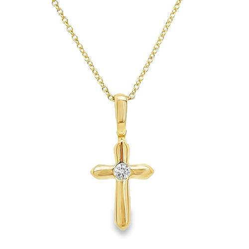 14K YELLOW GOLD DIAMOND CROSS NECKLACE #160-00311