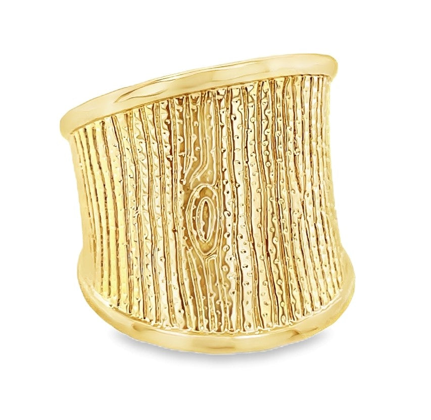 Yellow Gold Plated Mixed Metal Enchanted Forest Bark Ring, Size 8.