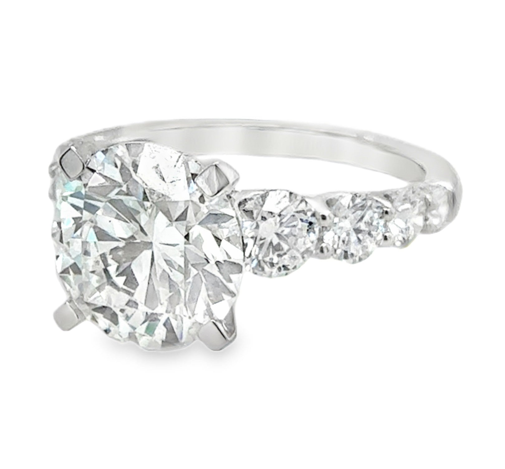 14K White Gold Ring with Center Round Lab Grown Diamond 3.00CTS and 8 Round SIde Diamonds 1.40CTTW.