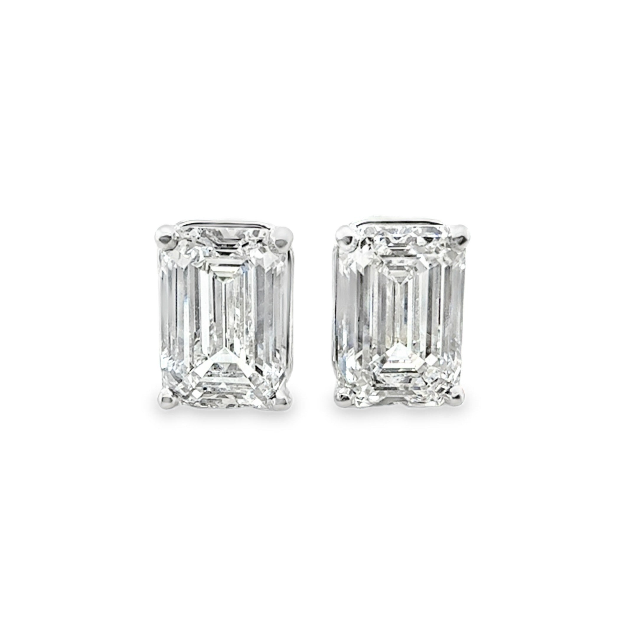 14K White Gold Earrings with Lab Grown Emerald Cut Diamonds 2.44CTTW, F-VS1.
