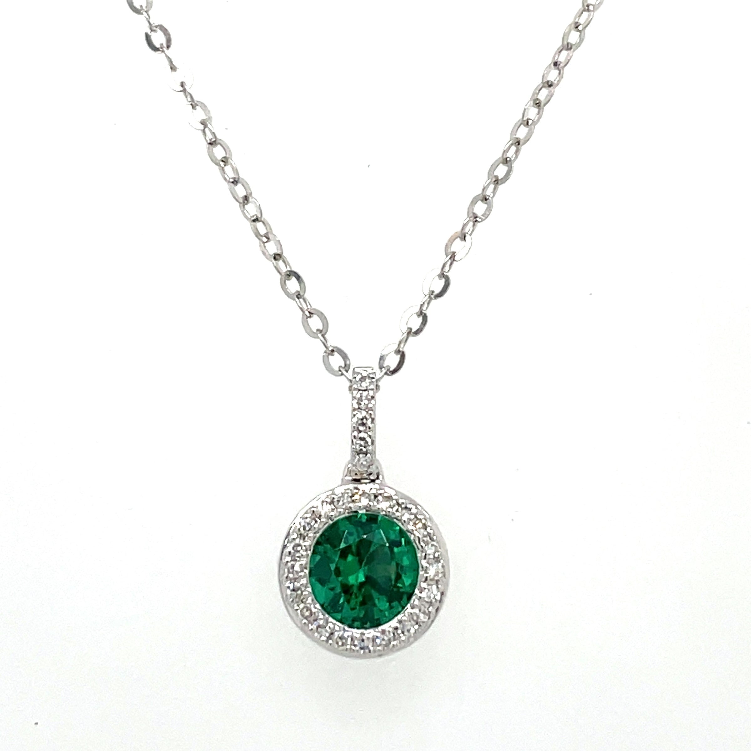 14K White Gold Necklace with Emerald Corundum .56CT and Diamonds D.07CTTW.