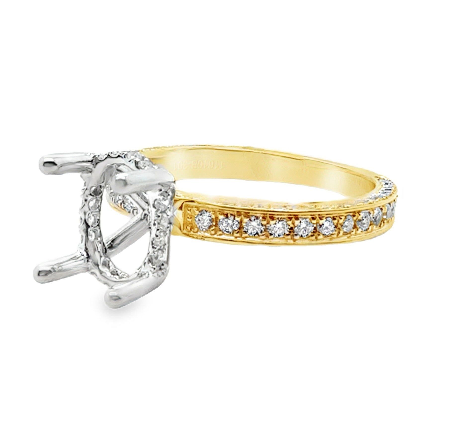 14K Yellow and White Gold Semi Mount Engagement Ring with Diamonds D.69CTTW.