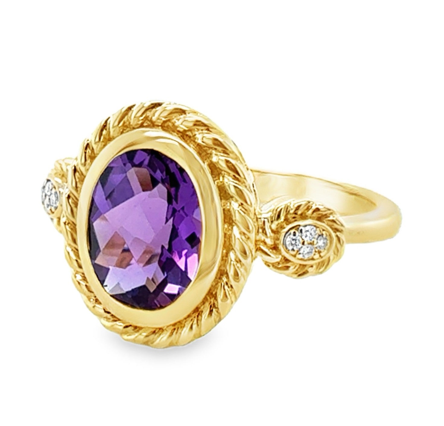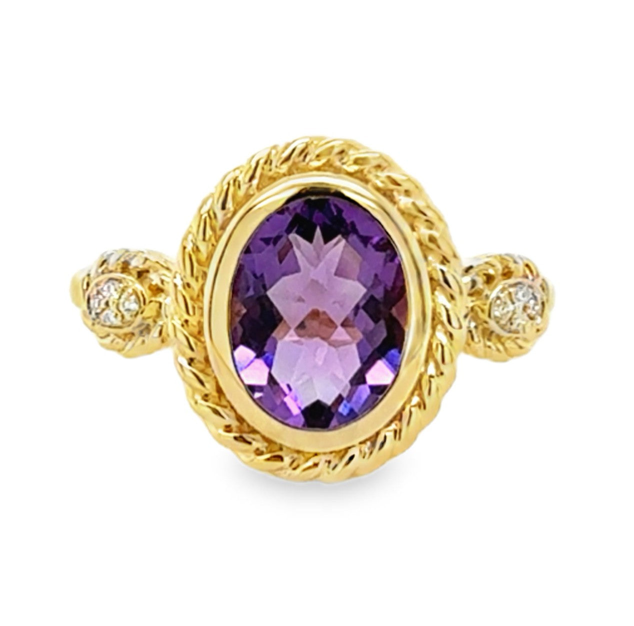 14K Yellow Gold Ring with Amethyst 1.38CT (9X7MM).