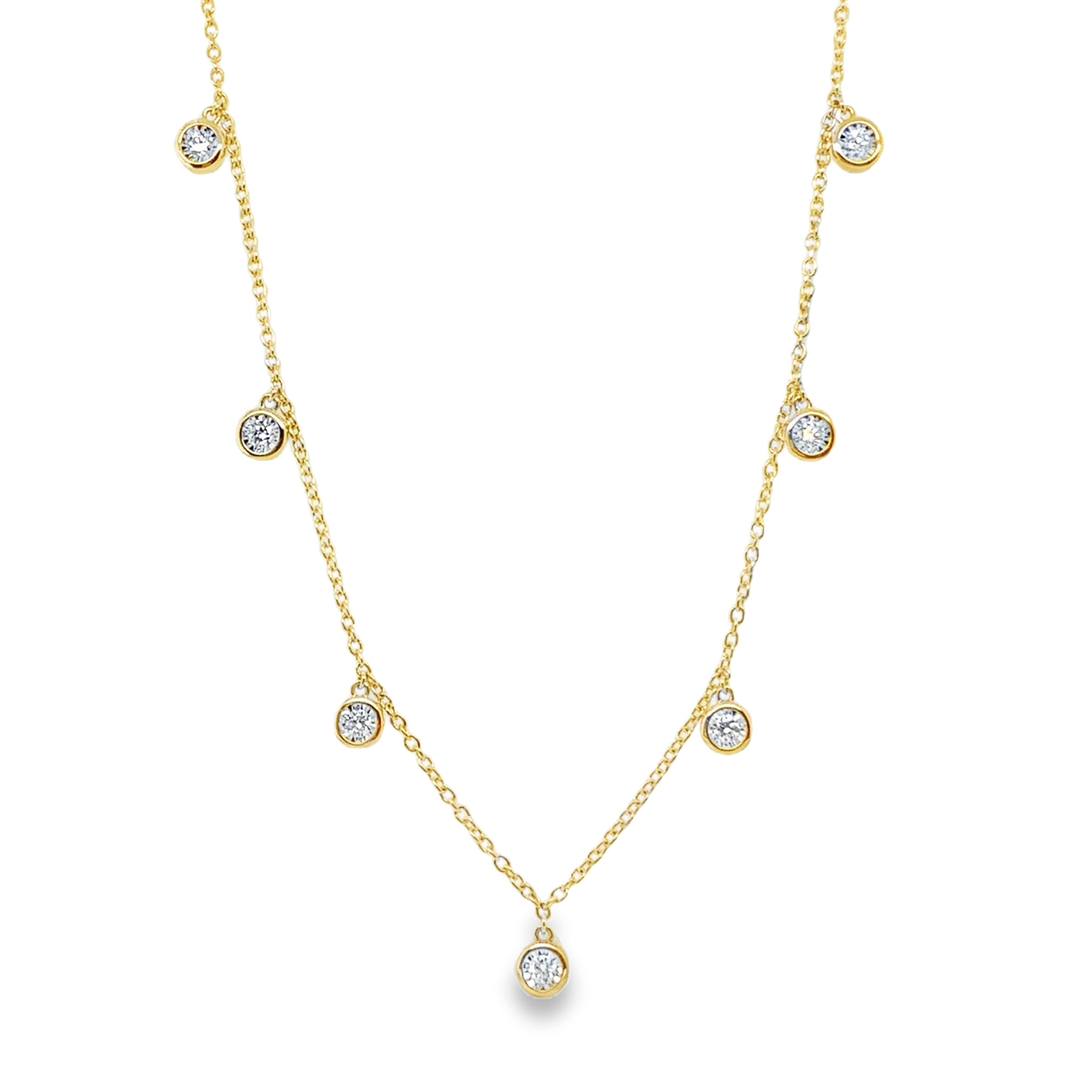 14K Yellow Gold Station Necklace with Diamonds D.32CTTW, 16-18".Cable Chain with Lobster Clasp.