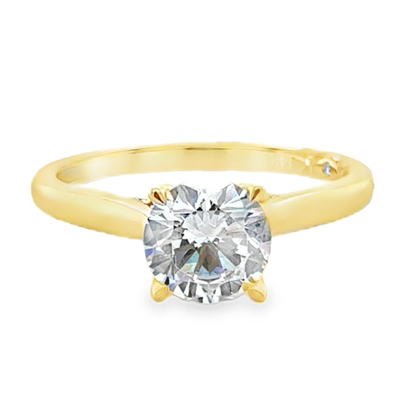 14K Yellow Gold Semi Mount Ring with Side Diamonds D.08CTTW G - SI and Center Cubic Zirconia 1.00CT.