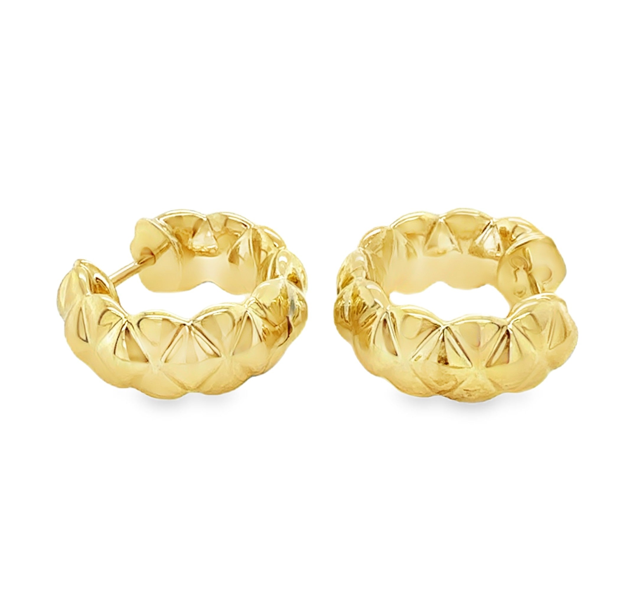 14K Yellow Gold Quilted Huggy Earrings.