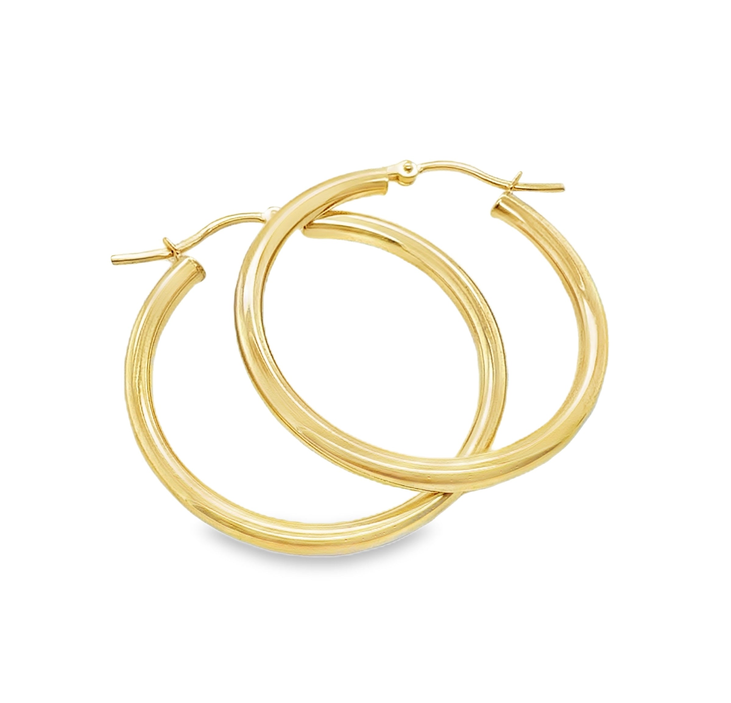 14K Yellow Gold Round Hoop Earrings 30 X 2.5MM.