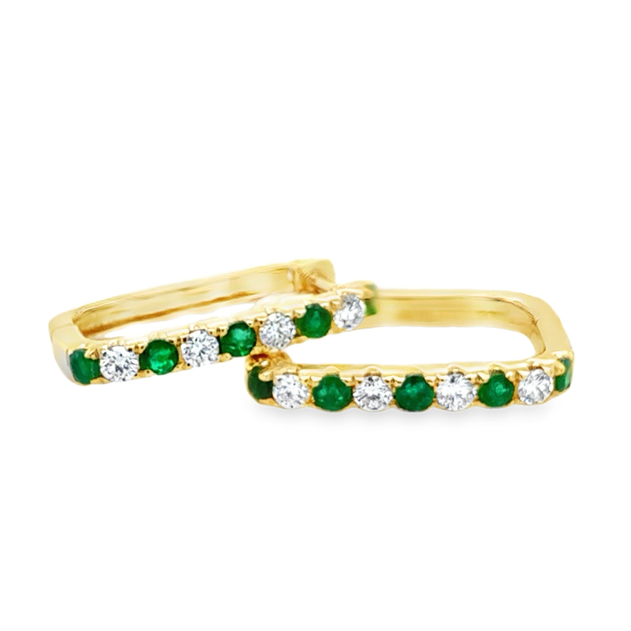 14K Yellow Gold Hoop Earrrings with Emeralds E.42CTTW and Diamonds D.32CTTW.