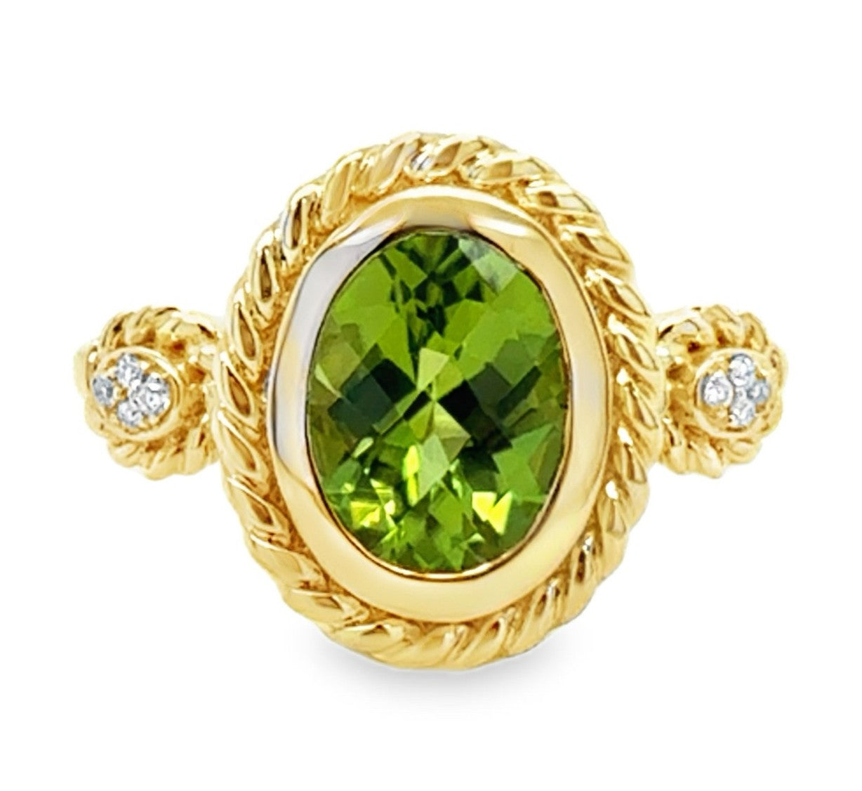 14K Yellow Gold Ring with Oval Peridot 1.86CT and Diamonds D.02CTTW.