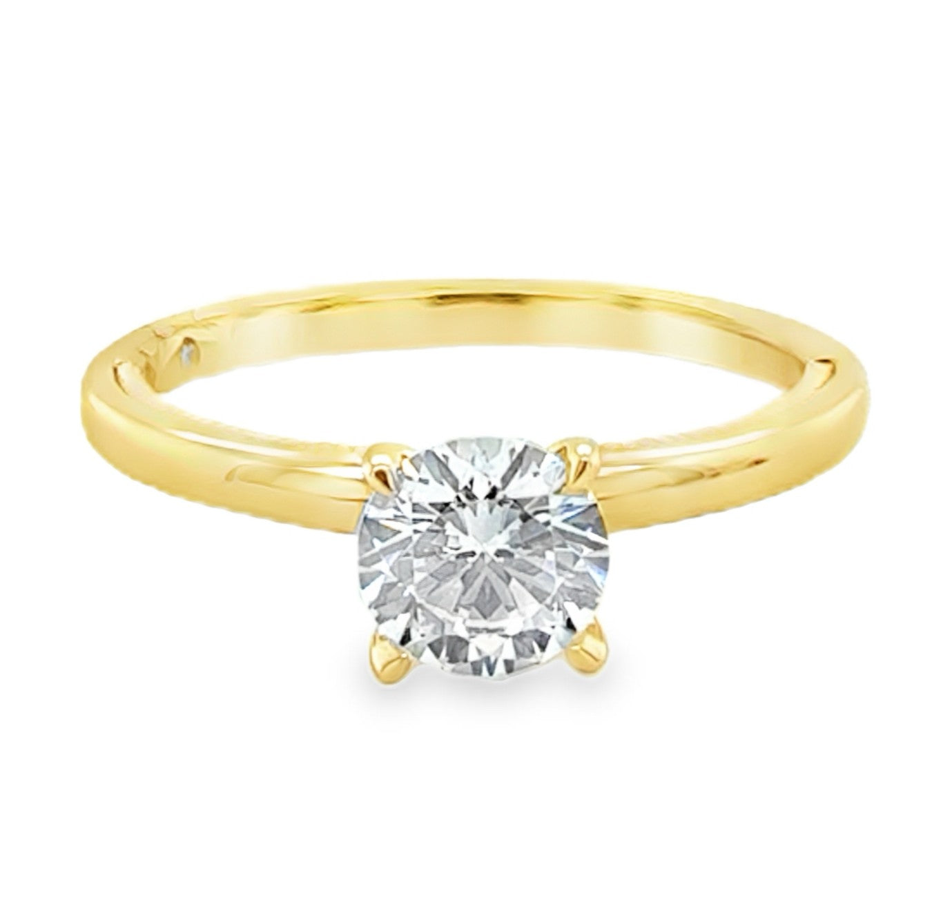 14K Yellow Gold Semi Mount Ring with Center Cubic Zirconia D.75CT Set in 4 Prongs.