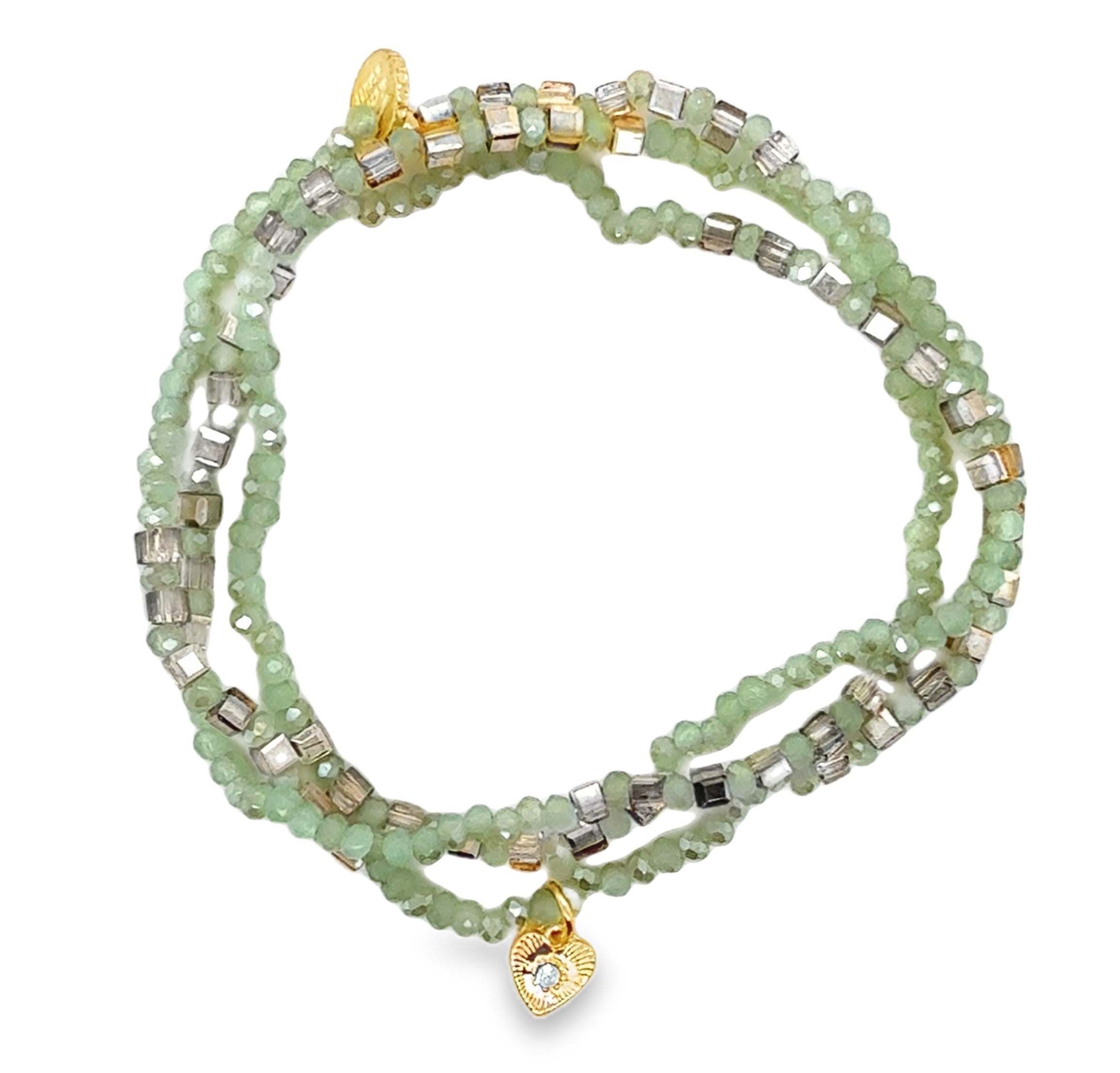 Mint Green Crystal Beaded Bracelet with Heart Charm.