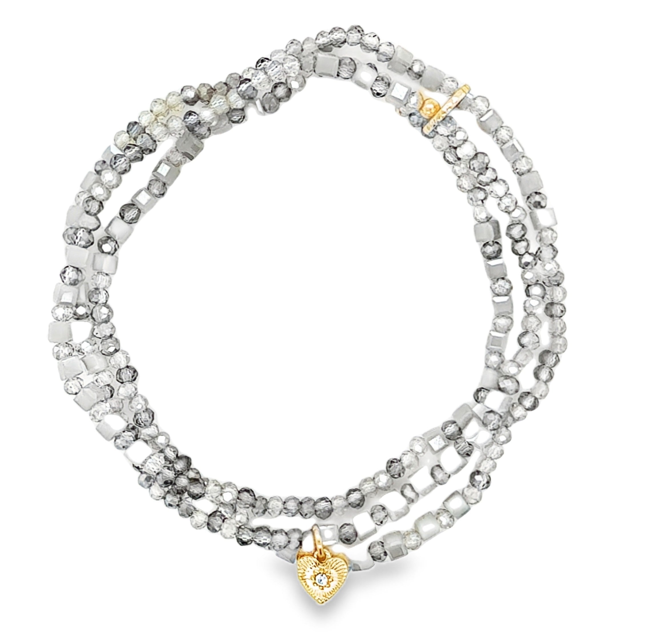 Neutral Crystal Beaded Bracelet with Heart Charm.