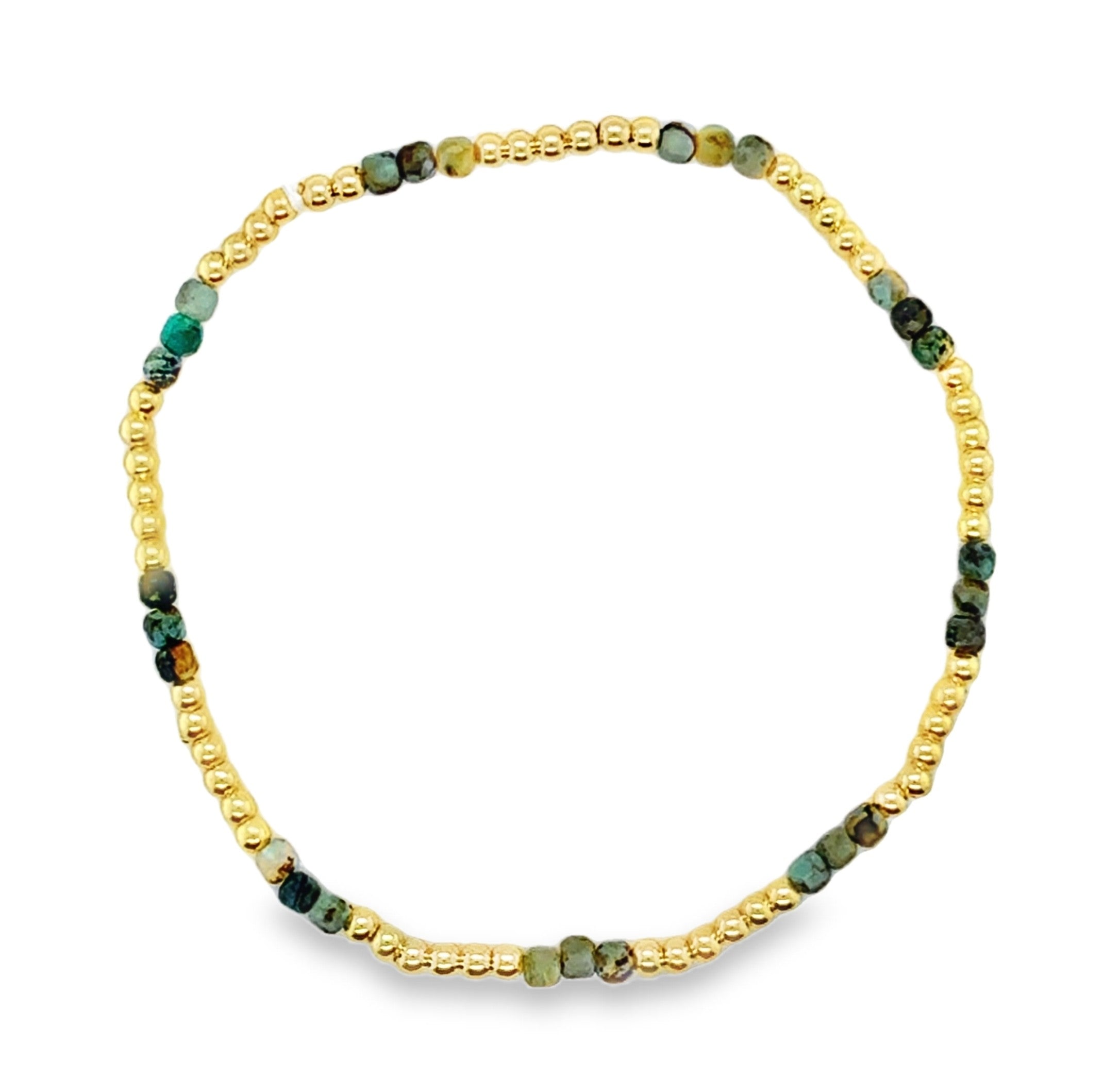 Gold Plated 3MM Bracelet with Triple Glass Bead Pattern.