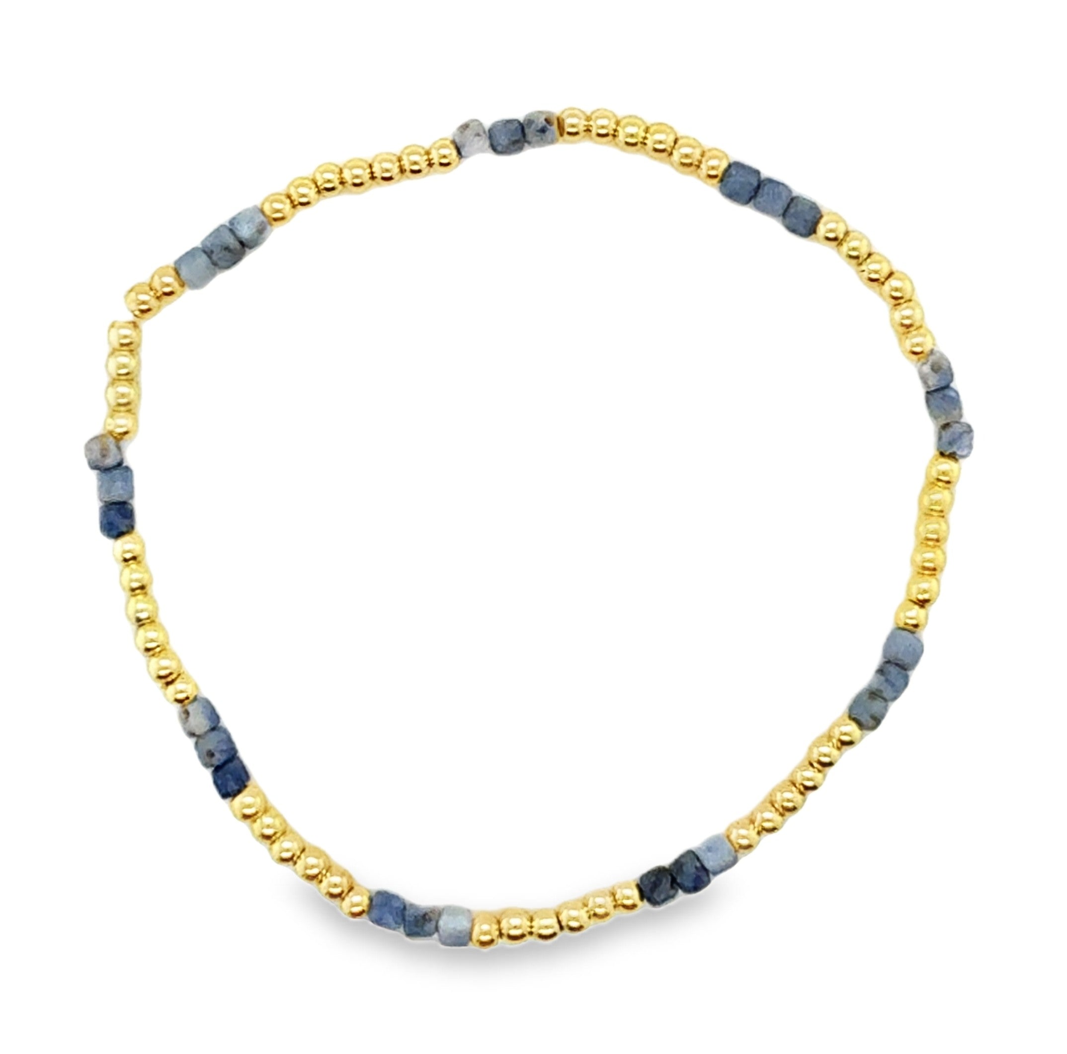 Gold Plated 3MM Bracelet with Triple Glass Bead Pattern.