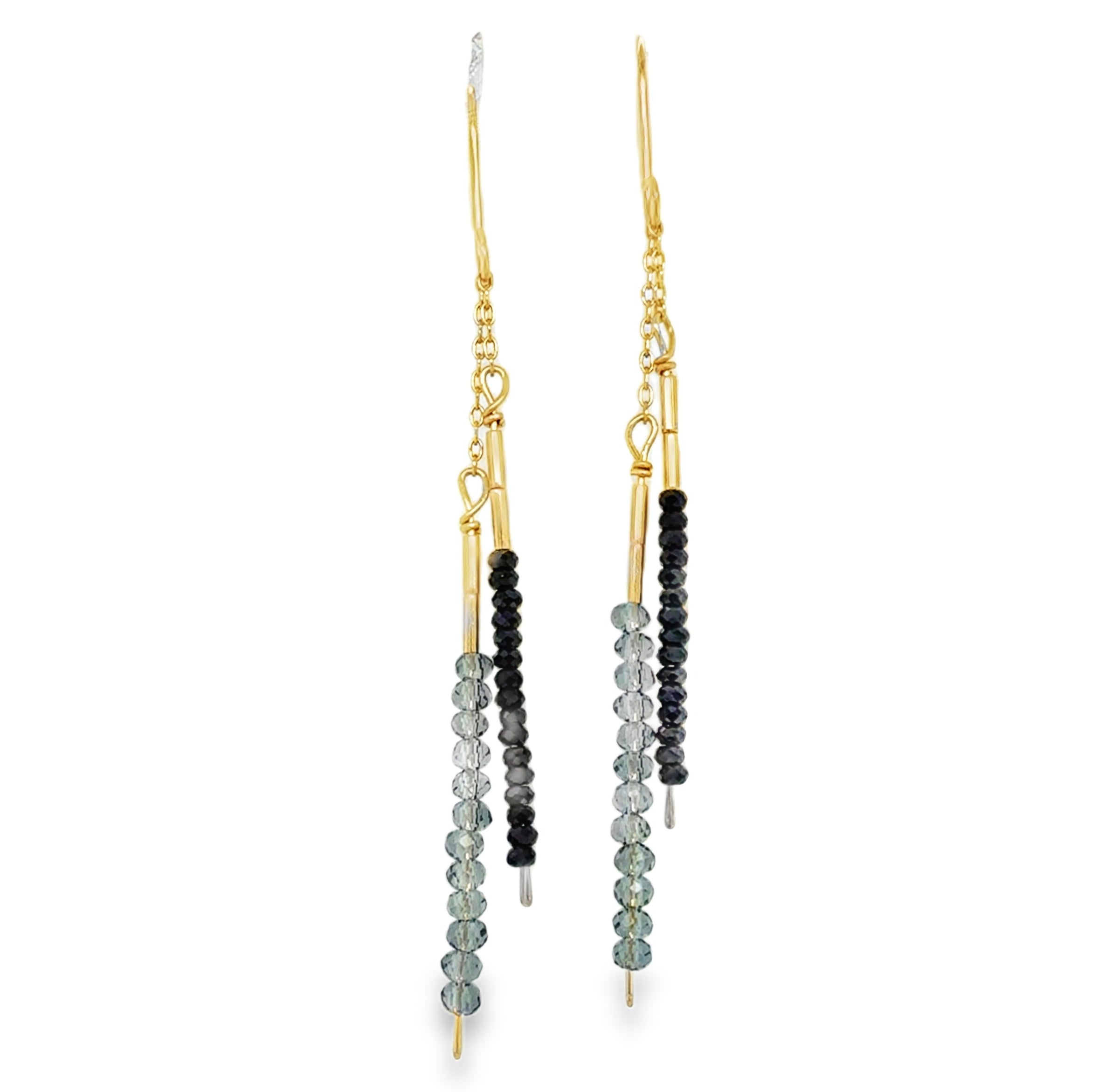 YELLOW GOLD FILLED GREY AND BLACK SPINEL EARRINGS #210-00474